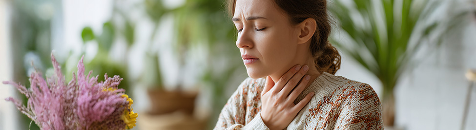 - uczucie „kluchy” w gardle, nasilające się podczas rozmów,