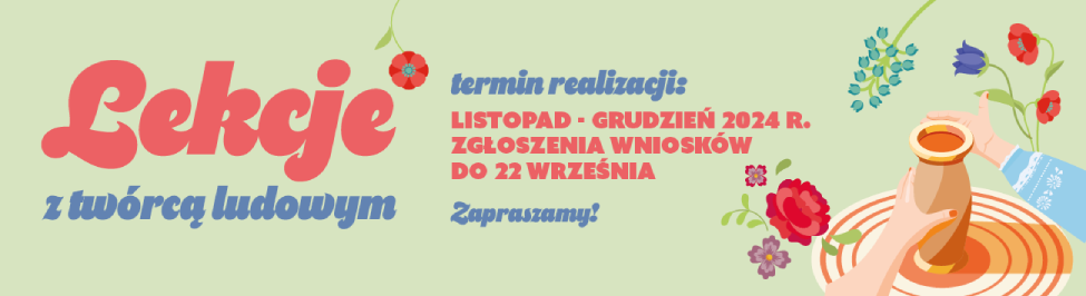 Narodowy Instytut Kultury i Dziedzictwa Wsi ogłasza drugą edycję programu pod nazwą „Lekcje z Twórcą Ludowym”. Jest on skierowany do placówek powszechnego systemu szkolnictwa i twórców ludowych z terenu Rzeczpospolitej Polskiej – mistrzów wyróżniających się dorobkiem, chcących dzielić się swoją wiedzą i umiejętnościami z młodym pokoleniem. Celem programu jest ratowanie lokalnego dziedzictwa i tradycji oraz zapewnienie ciągłości autentycznej twórczości ludowej.