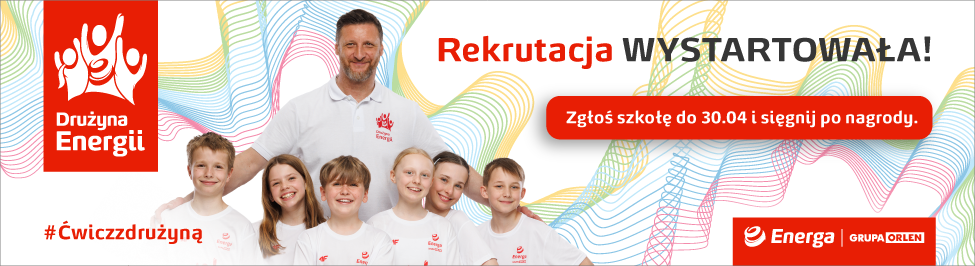 Wystartowały zapisy do 9. edycji Drużyny Energii - jednego z największych w Polsce programów promujących aktywność fizyczną wśród młodzieży, organizowanego przez Energę z Grupy ORLEN. Tegoroczna odsłona przynosi wyjątkową nowość: połączenie sportu z rytmem i tańcem, które dodaje rywalizacji jeszcze więcej energii i radości. Na najbardziej zaangażowane szkoły czekają nagrody o łącznej wartości ponad pół miliona złotych. Wielkie otwarcie z udziałem gwiazd sportu i mediów odbyło się 13 kwietnia w Ergo Arenie w Gdańsku. Drużyna Energii to ogólnopolski program skierowany do uczniów klas 4-7 szkół podstawowych (klasy 8 nieobligatoryjne). Jego celem jest rozwijanie sportowych pasji, zachęcanie do regularnego ruchu i wzmacnianie koleżeńskich więzi poprzez wspólną zabawę. Aby wziąć udział w rywalizacji o atrakcyjne nagrody i niezapomniane lekcje WF-u z mistrzami, wystarczy zgłosić szkołę na platformie